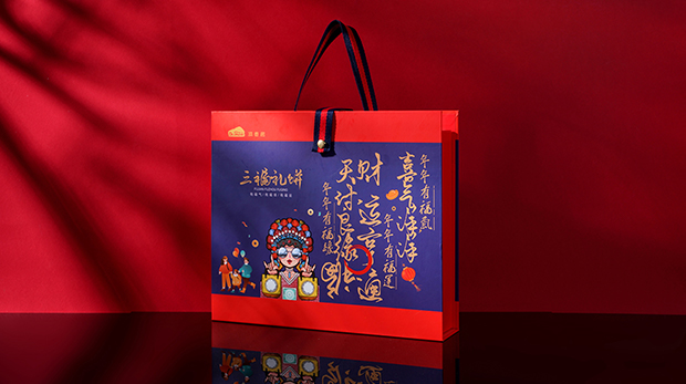 這款中秋節(jié)月餅禮品盒選用銅版紙作為主材質(zhì),銅版紙表面光滑、吸墨著墨性能好,非常適合大面積印刷。盒的內(nèi)部裝有絨布,此種面料觸感十足,摸上去讓人愛不釋手,盒蓋頂部開口有一個(gè)絲帶拎手方便攜帶,不僅可以作為裝飾可以作為拎手。大大提高了包裝盒的檔次。